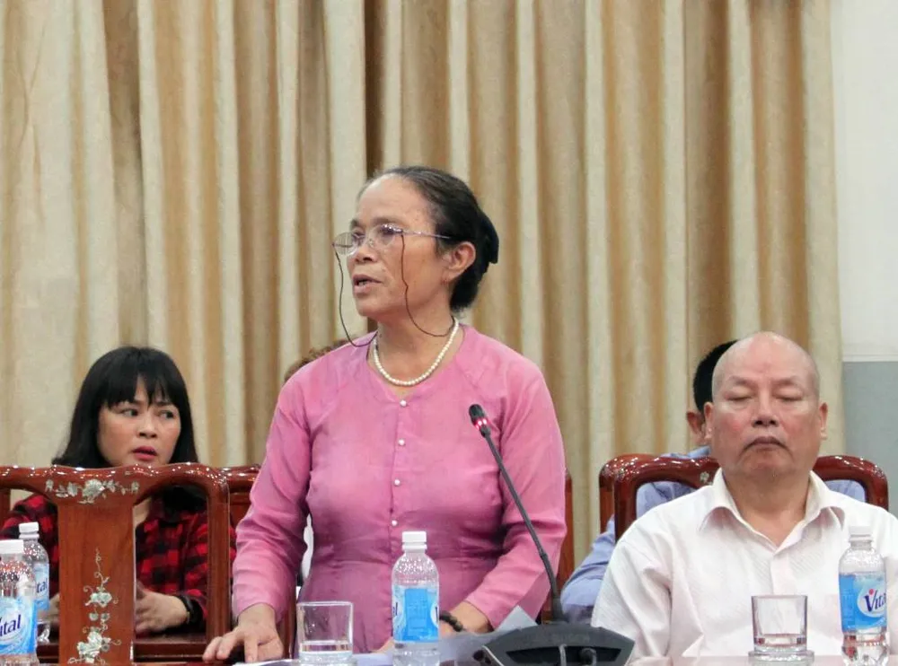 Bà Phan Thị Thuận mong muốn mồ hôi của công nhân trở thành dải lụa vươn ra quốc tế. Ảnh: CHÂN LUẬN