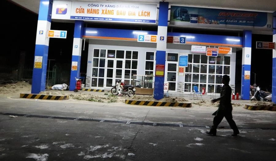 Hai trạm xăng dầu bên quốc lộ 1A (thị trấn Xuân An) vẫn đang “tấp” đất cát, chưa thể hoạt động trở lại để phục vụ khách hàng.