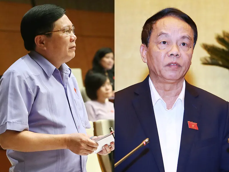 Đại biểu Quốc hội Cao Đình Thưởng (trái) bày tỏ lo lắng về việc yêu cầu các nhà cung cấp dịch vụ nước ngoài phải đặt máy chủ tại Việt Nam trong khi Chủ nhiệm Ủy ban Quốc phòng An ninh Võ Trọng Việt cho là rất cần thiết vì liên quan đến an ninh quốc gia. Ảnh: QH