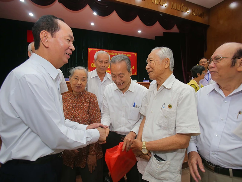 Sáng 19-6, Ủy viên Bộ Chính trị, Chủ tịch nước Trần Đại Quang đã có buổi tiếp xúc với cử tri ba quận 1, 3 và 4 (TP.HCM) sau kỳ họp thứ 5 Quốc hội (QH) khóa XIV.