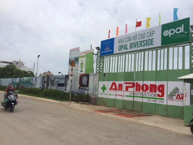 Đây là công trường thi công của dự án Opal Riverside của Công ty Địa ốc Đất Xanh, nhưng hiện chủ đầu tư đã bán gần hết số lượng căn hộ.