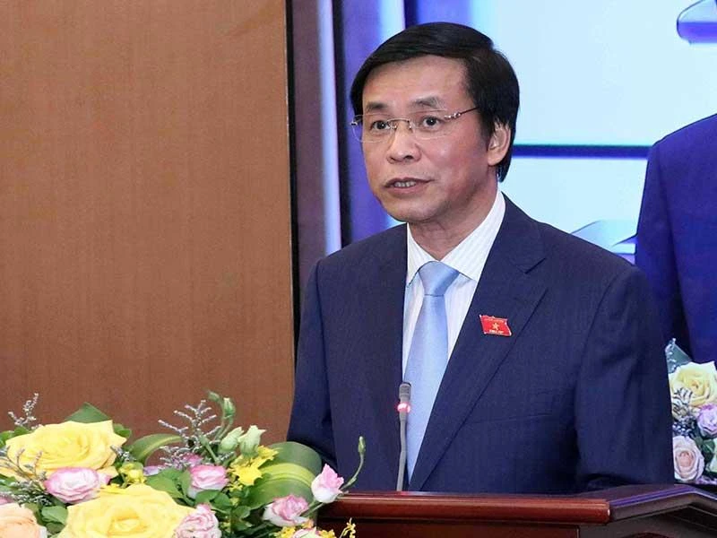 Tổng Thư ký Quốc hội - Chủ nhiệm Văn phòng Quốc hội Nguyễn Hạnh Phúc phát biểu tại buổi họp báo. Ảnh: TTXVN