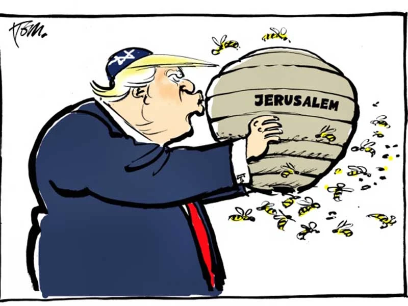 Quyết định của ông Trump về Jerusalem đã tạo ra làn sóng phản đối toàn cầu. Biếm họa của Tom Janssen (báo The Netherlands ở Hà Lan)