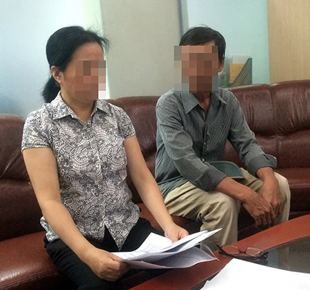 Bà Kim Anh và ông Tuấn đang trình bày sự việc. Ảnh: HỒNG TÚ