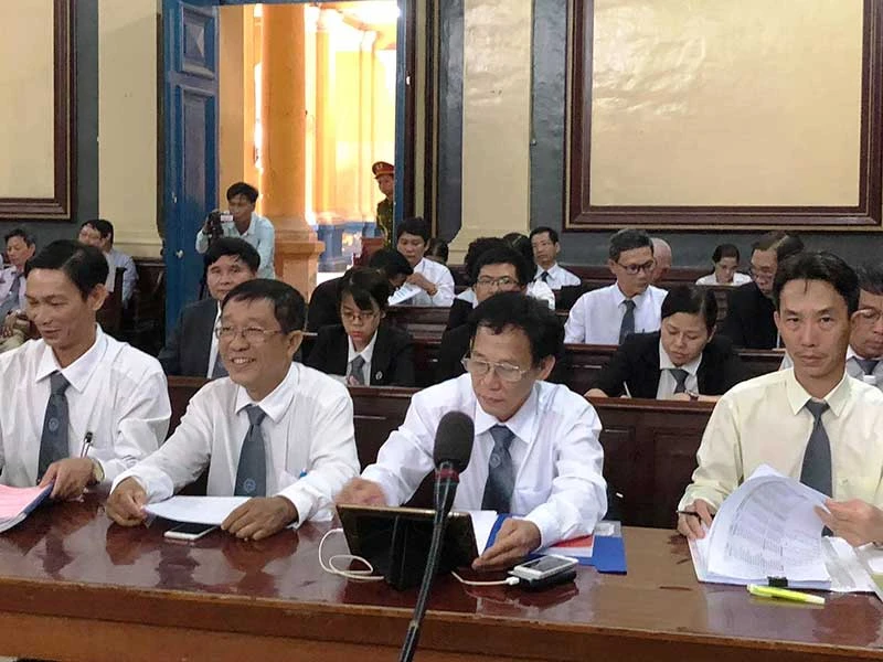 LS Phạm Công Út (thứ hai từ phải sang) tại phiên xử Navibank. Ảnh: HY