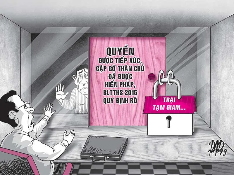 | Quy định đủ nhưng chấp hành yếu Việc LS không được tiếp xúc với bị can đúng luật là điều có thật. Sau khi BLTTHS 2015 được sửa đổi, bổ sung đã quy định rất rõ thì tình trạng này vẫn không được khắc phục. Thậm chí quy định tồn tại nhưng không ai chấp hành, các CQĐT không làm theo luật, nhiều LS đã trải qua tình trạng này. Những đổi mới của Hiến pháp 2013, nhất là Chương II về quyền con người, quyền công dân; quyền được có LS ngay từ đầu của bị can, được tiếp xúc với bị can của LS. Thậm chí những người bị tạm giữ cũng đã được tiếp xúc với LS rồi nhưng nhiều trường hợp CQĐT không thực hiện quy định này theo đúng tinh thần của Hiến pháp 2013 và BLTTHS 2015. Đại biểu Quốc hội, LS TRƯƠNG TRỌNG NGHĨA |