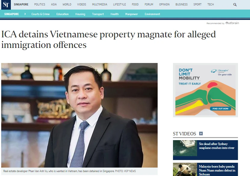 Trước đó, vào chiều 2-1, tờ Straits Times của Singapore có đăng bài viết với tiêu đề "ICA tạm giữ đại gia bất động sản Việt Nam với cáo buộc vi phạm luật nhập cư". Trên giao diện của bản tin, tờ báo này sử dụng hình ảnh được cho là ông Phan Van Anh Vu, đang bị cơ quan chức năng Việt Nam khởi tố và phát lệnh truy nã.