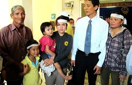 LS Võ An Đôn bên gia đình nạn nhân Ngô Thanh Kiều. Ảnh: Tấn Lộc