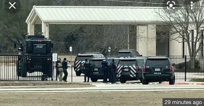 Lực lượng FBI, đặc nhiệm SWAT tham gia giải cứu con tin tại nhà thờ ở Texas, Mỹ. Ảnh: TWITTER / KEN BERKOWITZ