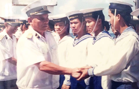 Trung tướng Mai Xuân Vĩnh đang thăm hỏi cán bộ, chiến sĩ hải quân. Ảnh: Tư liệu