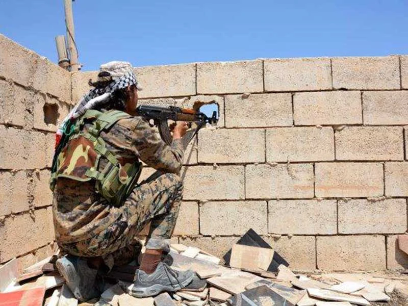 Một thiện xạ của lực lượng SDF đang tác chiến ở Raqqa. Ảnh: EPA