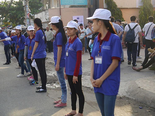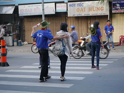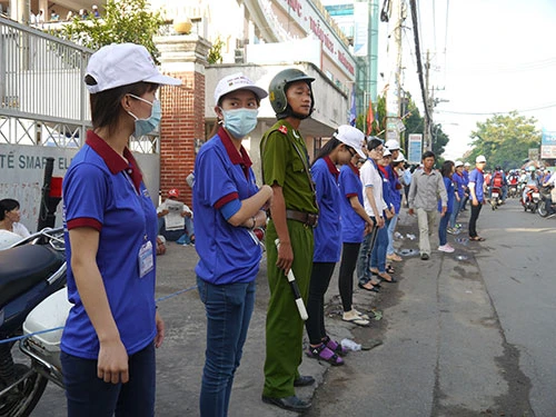 Đã có khoảng 20 sinh viên tình nguyện lập "hàng rào xanh".