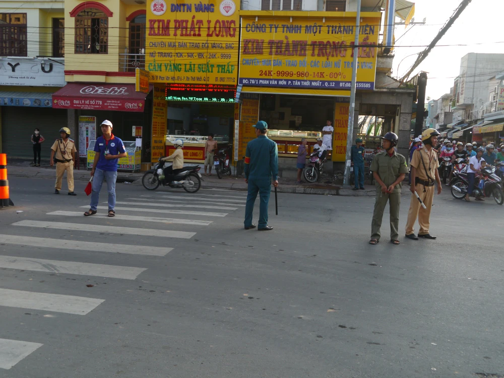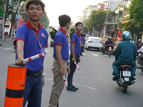 Lực lượng cảnh sát giao thông, dân quân cùng bảo vệ dân phố đã được triển khai ngay từ đầu đường nhằm hạn chế tình trạng hỗn loạn có thể xảy ra