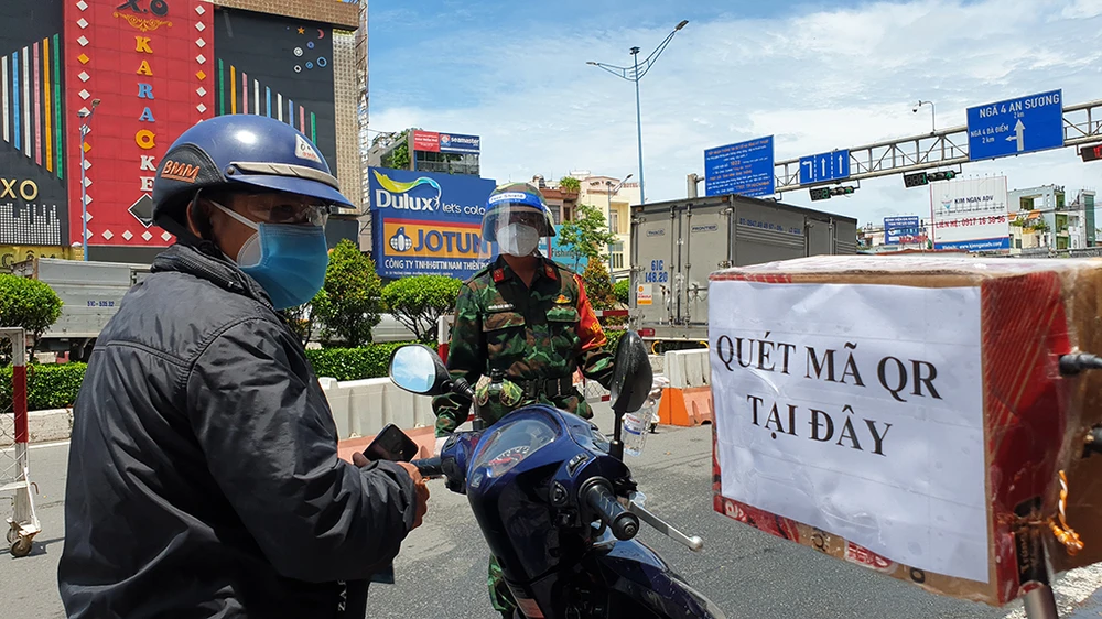 Trưa 8-9, ghi nhận trên địa bàn nhiều quận huyện tại TP.HCM đã triển khai nhiều máy quét mã QR tự động hỗ trợ khai báo di chuyển nội địa tại các chốt kiểm soát dịch COVID-19.