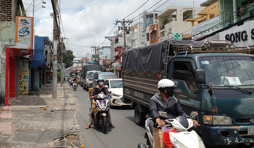 Trong ngày, trên đường Tân Kỳ Tân Quý lượng phương tiện cũng khá đông. Ảnh: NT