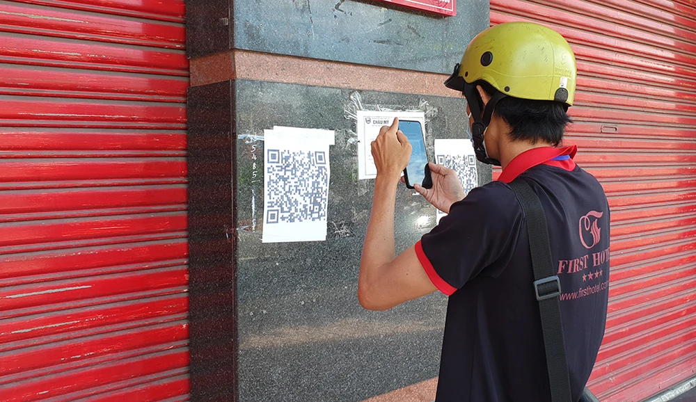Người dân khi quét mã cũng được yêu cầu giữ khoảng cách, không được tập trung một chỗ. Các mã QR đã được lực lượng chức năng dán ở các địa điểm cách xa nhau gần chốt.