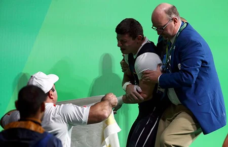 VĐV cử tạ người Armenia, Andranik Karapetyan đã gặp phải chấn thương kinh dị khi thi đấu ở hạng cân 77 kg tại Olympic Rio. VĐV cử tạ 20 tuổi này bị trật khớp sau nỗ lực lần thứ hai nâng mức tạ 195 kg vào đêm qua.