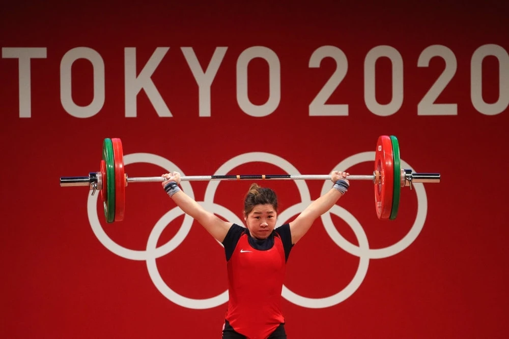 Lực sĩ Hoàng Thị Duyên hoàn thành tốt hai nội dung cử giật và cử đẩy tại Olympic Tokyo. ẢNH: GETTY