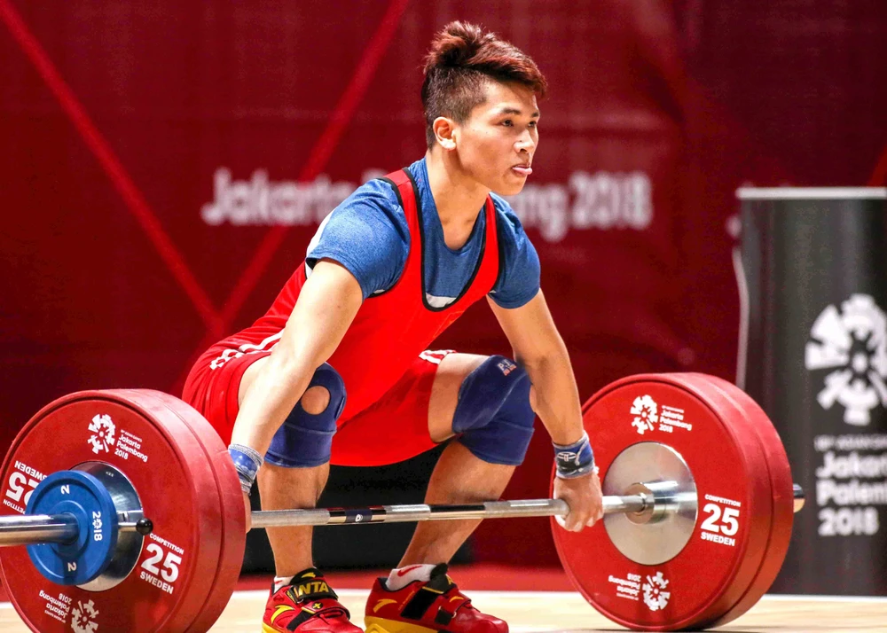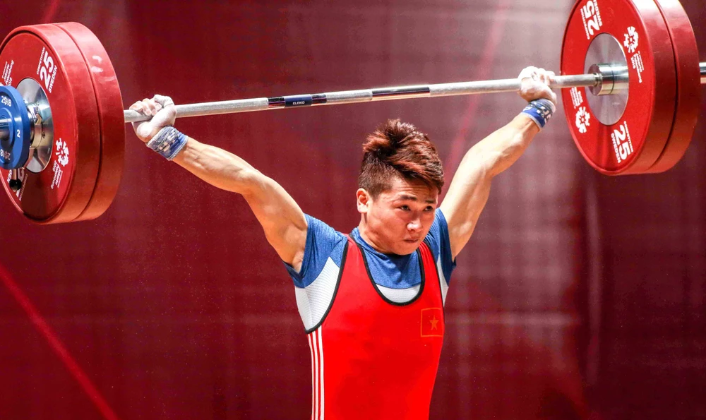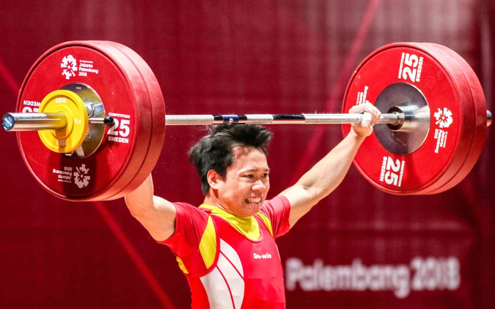 Lực sĩ Trịnh Văn Vinh hoàn thành phần thi cử giật.