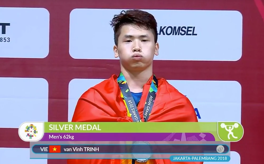 Trịnh Văn Vinh trên bục nhận HCB Asiad 18. ẢNH: PHẠM HUY