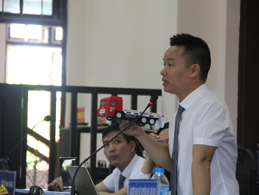 “Đại diện VKS nói về chướng ngại vật nhưng phải hiểu rằng chướng ngại vật là vật thể bất động. Trong vụ án này, xe của bị cáo Sơn đang lùi thì có được coi là chướng ngại vật hay không? Hơn thế, với tốc độ 62 km/giờ của một xe đầu kéo gắn theo rơmoóc có trọng tải trên 40 tấn thì làm thế nào để xử lý an toàn được, trong khi xe của Sơn không phải dừng do lý do khách quan (hỏng hóc) mà lại đang lùi…” - LS này nói.