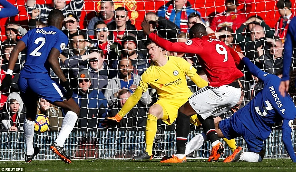 Lukaku ra chân san bằng tỉ số 1-1 cho MU.