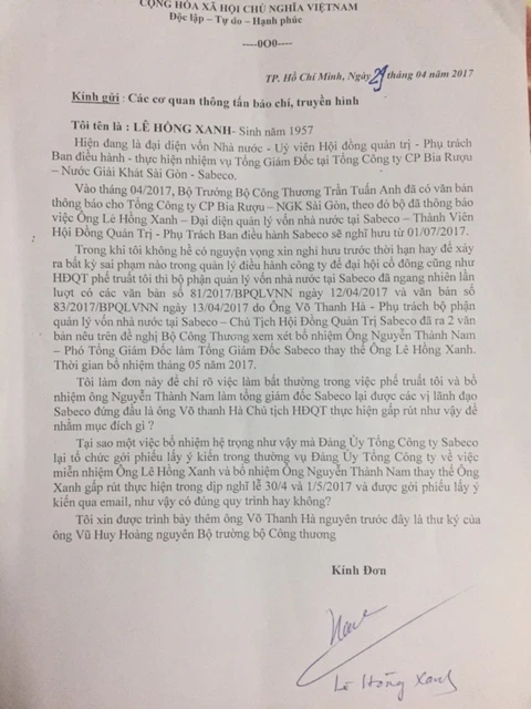 Tuy nhiên, trước đó trên một số báo phản ánh việc ông Lê Xuân Xanh đã có đơn nêu ý kiến về việc Hội đồng Quản trị Sabeco không hiểu vì lí do gì đã làm các thủ tục để buộc ông phải về hưu trước thời hạn khiến cho ông Xanh và tập thể cán bộ công nhân viên của Sabeco bức xúc.