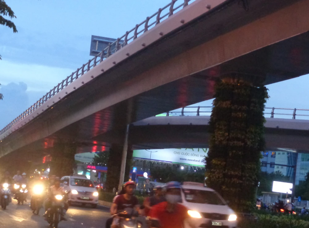 ... và màu xanh lá ấy chạy dài theo các nhịp cầu chính tạo cảm giác cho người xuống sân bay, đi vào nội ô đang đến với TP xanh tươi, thân thiện