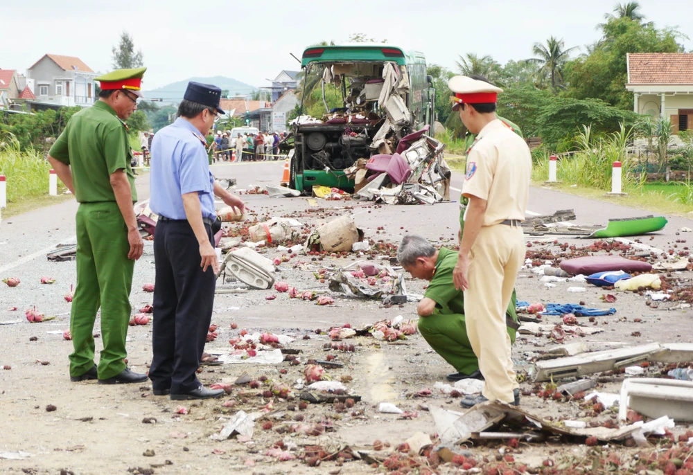 Chiều 17-8, trao đổi với Pháp Luật TP.HCM, Đại tá Nguyễn An Ninh, Phó giám đốc Công an tỉnh Bình Định, cho biết Công an tỉnh này đang phối hợp Công an huyện Phù Mỹ điều tra nguyên nhân vụ tai nạn giữa giao thông giữa xe khách và xe đầu kéo làm năm người chết, sáu người bị thương nặng.