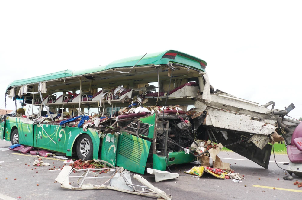 Như Pháp Luật TP.HCM đã thông tin, lúc 22g ngày 16-8, trên đường tránh quốc lộ 1A đoạn thuộc thôn An Lạc Đông 2, thị trấn Phù Mỹ, huyện Phù Mỹ đã xảy ra vụ tai nạn giữa xe đầu kéo 35C- 035.50 do tài xế Nguyễn Văn Hương (28 tuổi, ngụ tỉnh Ninh Bình) điều khiển, chạy hướng bắc - nam và xe khách 75B- 001.01 do tài xế Nguyễn Long Hồ (44 tuổi, ngụ tỉnh Thừa Thiên Huế) điều khiển, lưu hành chiều ngược lại. Vụ tai nạn làm năm người trên xe khách chết tại chỗ, sáu người khác bị thương nặng.