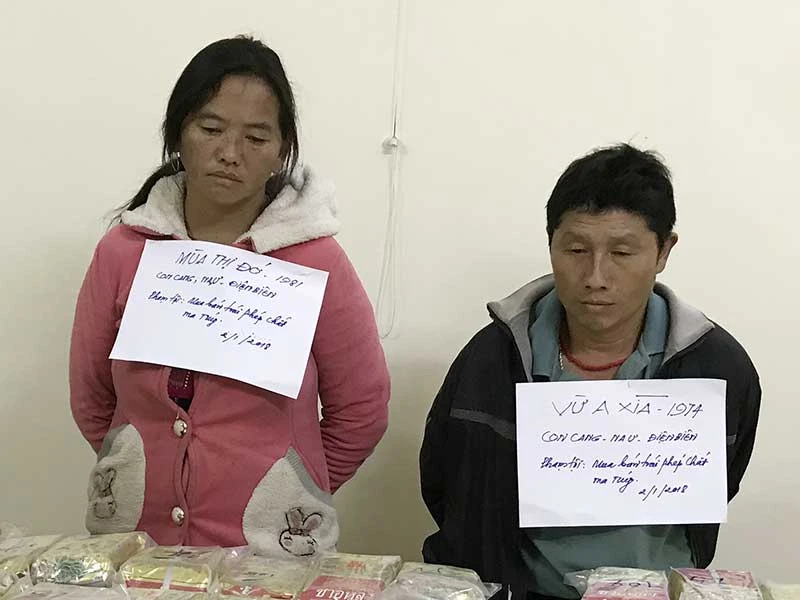 Hai vợ chồng Vàng A Kia chở thuê hơn 170 kg heroin bị bắt giữ. Ảnh: HH