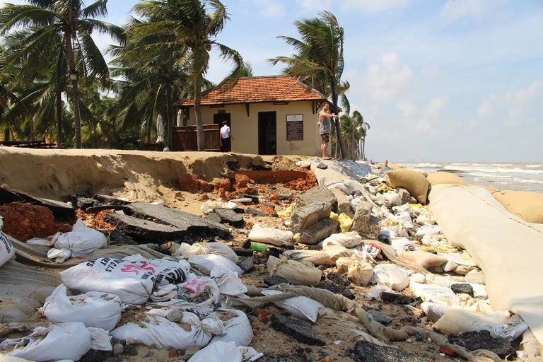 Bờ biển Hội An bị sạt lở nghiêm trọng sau bão lũ. Ảnh HT