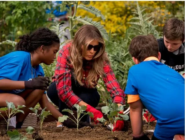 Đệ nhất phu nhân Melania Trump trồng rau tại vườn rau Nhà Trắng. Ảnh: AP