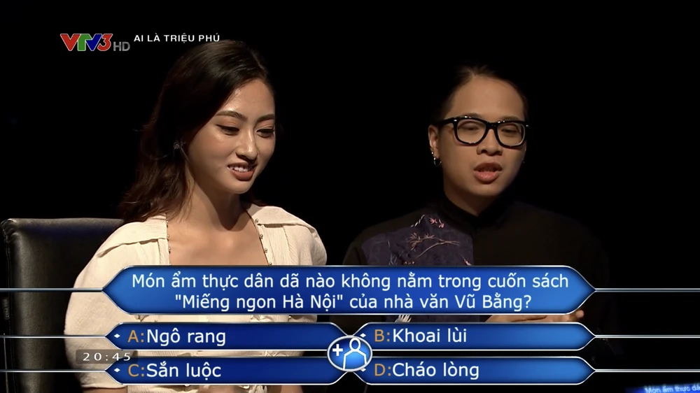 Thử thách dành cho Lương Thùy Linh ở câu hỏi số 12 là: Món ẩm thực dân dã nào không nằm trong cuốn sách Món ngon Hà Nội của nhà văn Vũ Bằng.