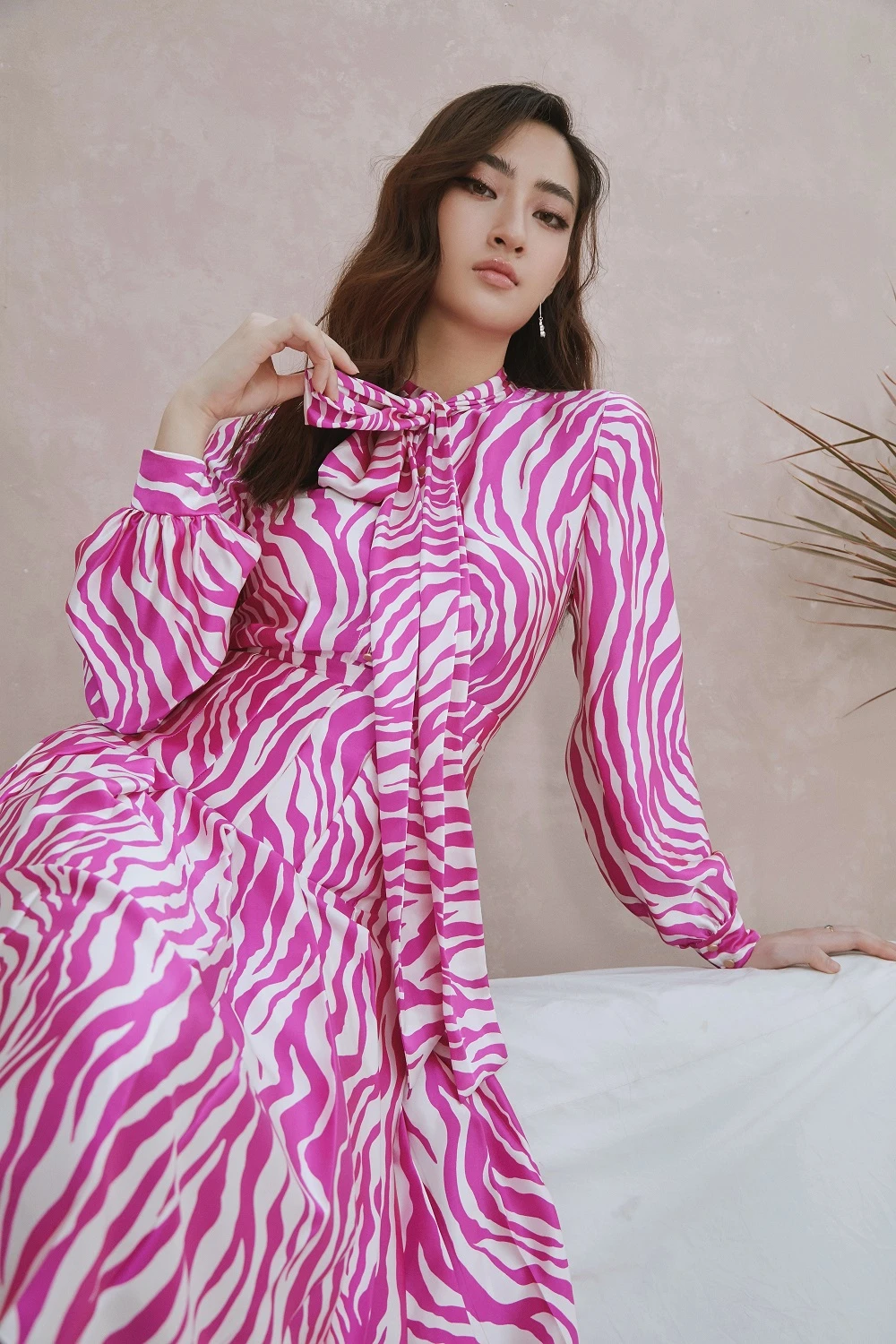 Lựa chọn sắc hồng và trắng trong bộ ảnh mới, đây cũng chính là hai tông màu “phong thủy” giúp Lương Thùy Linh để lại dấu ấn của mình tại đấu trường nhan sắc trước đây.