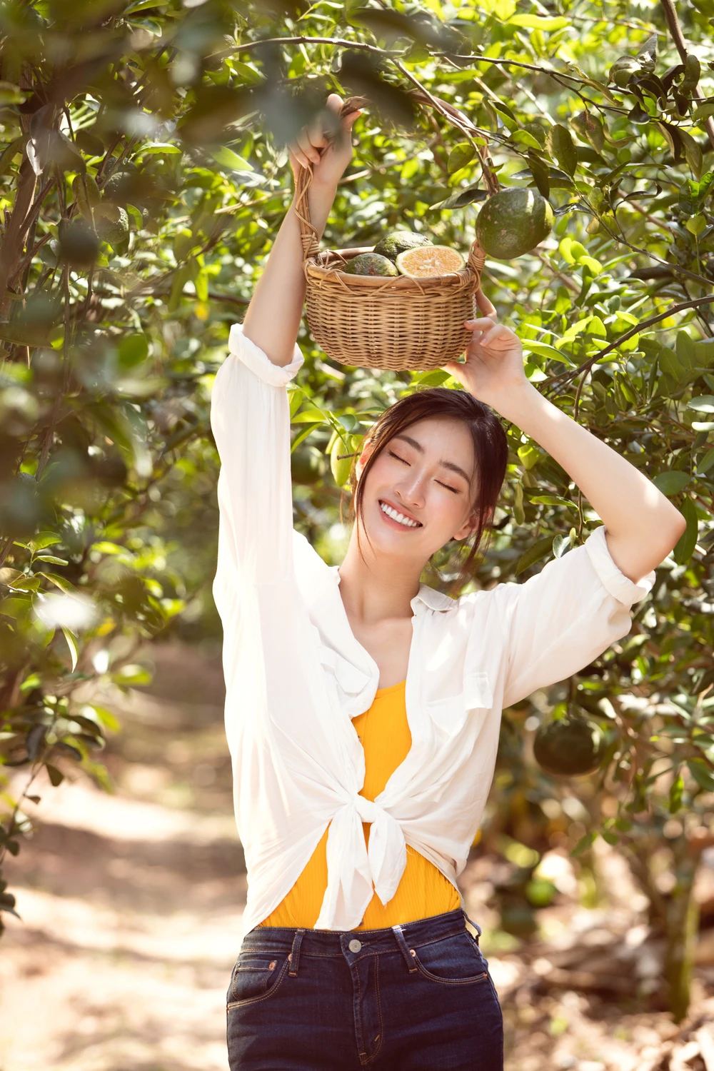Theo chân người đẹp, khán giả được chứng kiến cận cảnh những quả cam căng tràn mọng nước và những củ khoai ngọt thơm được gặt hái tận vườn.