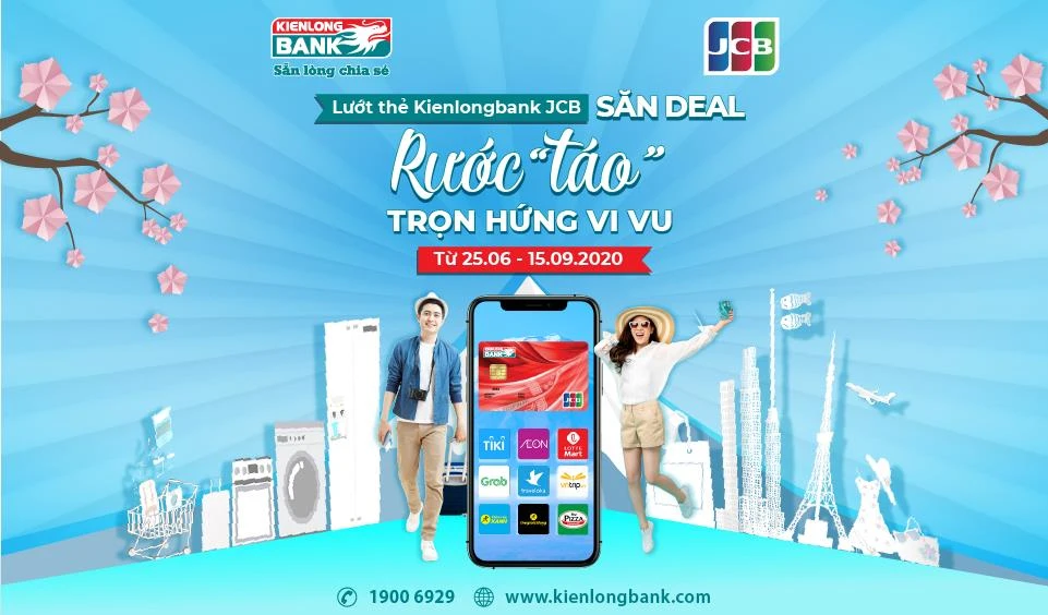 Từ ngày 25-6 đến ngày 15-9-2020, Ngân hàng TMCP Kiên Long (Kienlongbank) phối hợp với Tổ chức thẻ quốc tế JCB triển khai chương trình khuyến mại (CTKM) “Lướt thẻ Kienlongbank JCB, săn deal, rước táo, trọn hứng vi vu”.