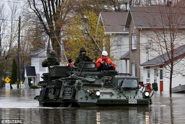 Quân đội Canada đang chạy đua với trận lũ lụt tồi tệ nhất quét qua Quebec hàng thập kỷ qua. Ảnh: Reuters