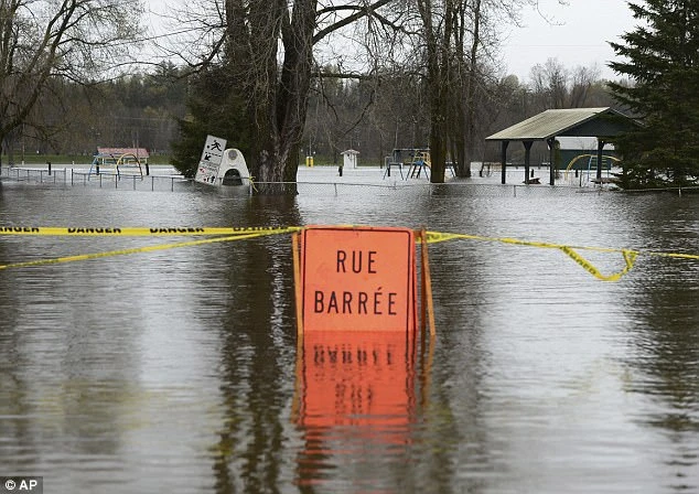 Theo Daily Mail, hôm 7-5, cảnh sát tìm kiếm một người đàn ông cùng con của ông bị dòng nước lũ cuốn trôi. Một phát ngôn viên cảnh sát Quebec cho biết phương tiện của họ cũng đã trôi theo dòng nước lũ.