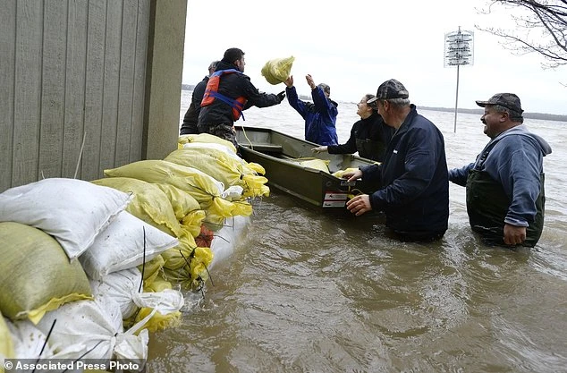 Người dân làm các bao cát để chèn chống cơn lũ. Ảnh: Reuters