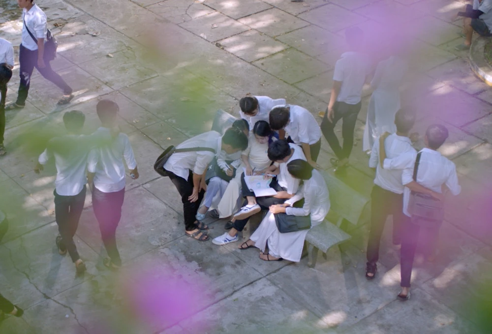 Dưới bóng bằng lăng trong sân trường