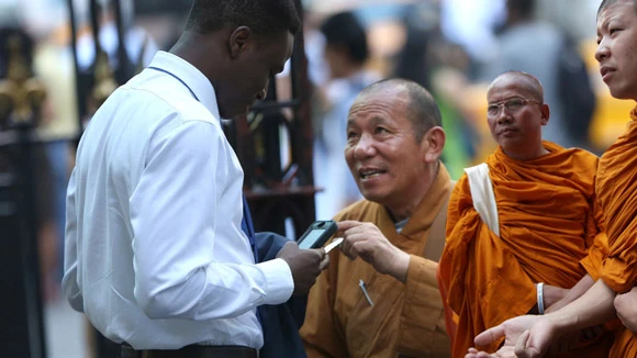 Khi được hỏi, những người đàn ông mặc áo nhà sư này đều lảng tránh trả lời họ đến từ đâu cũng như nơi họ tu hành. Họ ít nói tiếng Anh, đa phần đều nói tiếng Trung. Một người phụ nữ họ Lin mặc áo nhà sư cho biết, cô ta tu một ngôi chùa ở Đài Loan nhưng từ chối cho biết địa chỉ cụ thể. “Tôi có nói các anh cũng không biết”, người phụ nữ này nói bằng tiếng Anh. Khi bị hỏi nhiều lần, Lin nổi cáu: “Ai bảo là tôi không có chùa. Nếu không làm sao tôi ăn mặc được như thế này?”.