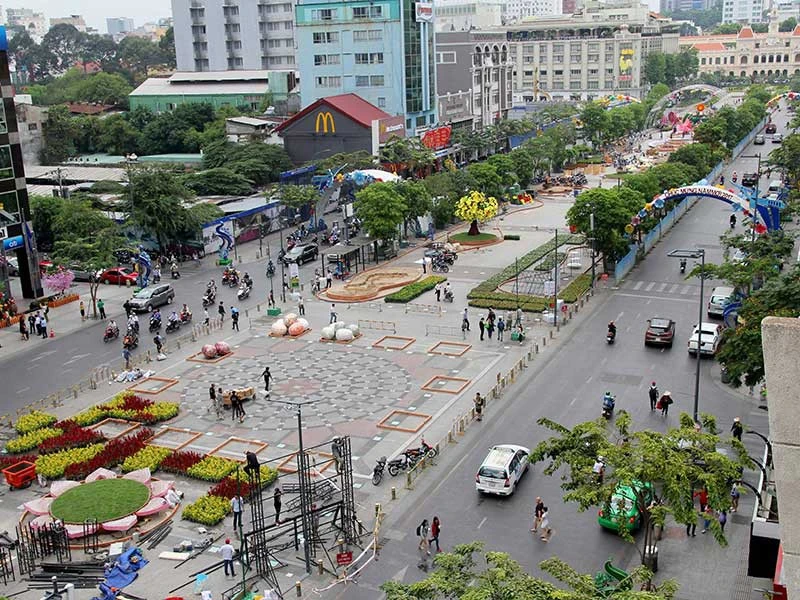 Trên các tuyến đường kết nối từ đường Đồng Khởi vào đường Nguyễn Huệ: Nguyễn Thiệp, Lê Lợi (lối lưu thông hai bên công viên Lam Sơn).
