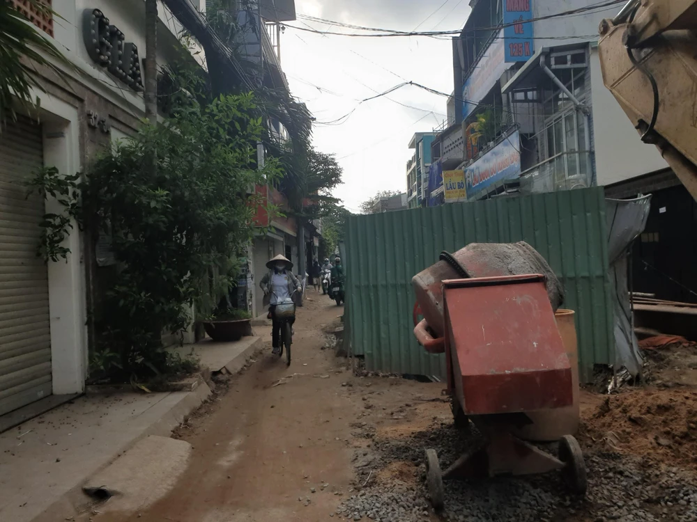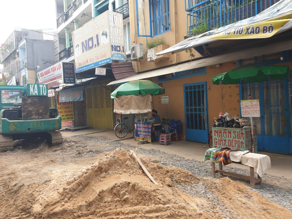 Trong suốt thời gian qua, người dân khu vực dự án phải sống chung với đường lầy lội, đường cống và vật liệu xây dựng. Thậm chí, nhiều hàng quán phải tạm ngưng buôn bán vì công trình thi công chậm tiến độ.