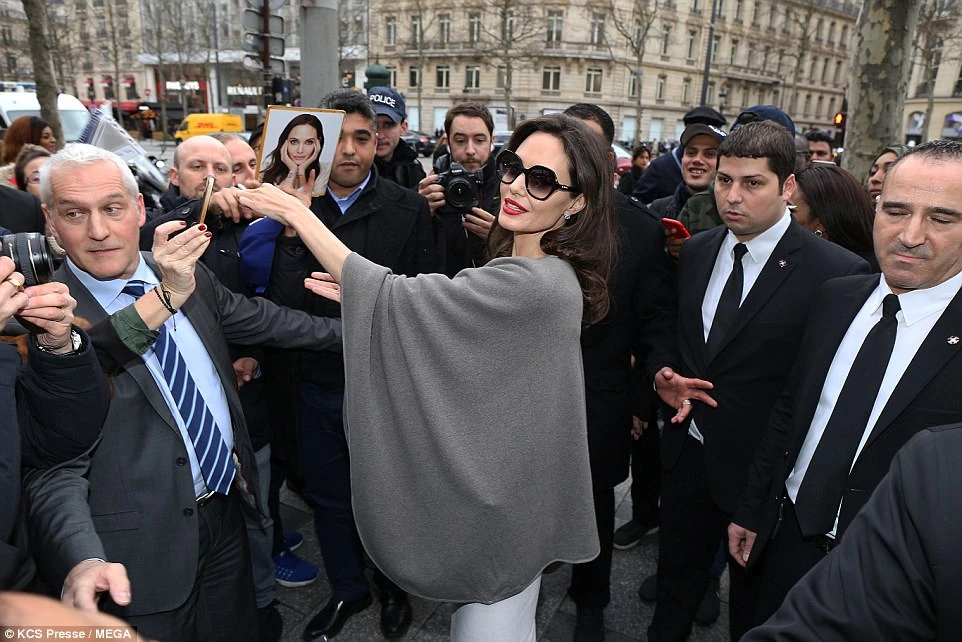 Sau khi rời cung điện, Jolie đi quay phim quảng cáo cho dòng nước hoa mới của Guerlain. Ngôi sao 42 tuổi nhiệt tình ký tặng cho người hâm mộ Pháp trên đường phố.