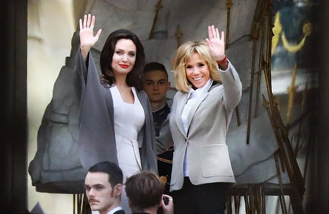 Angelina Jolie gặp mặt Đệ nhất phu nhân Brigitte Macron của Pháp để thảo luận về chuyến thăm gần đây của bà tới Jordan. Ảnh:Abaca
