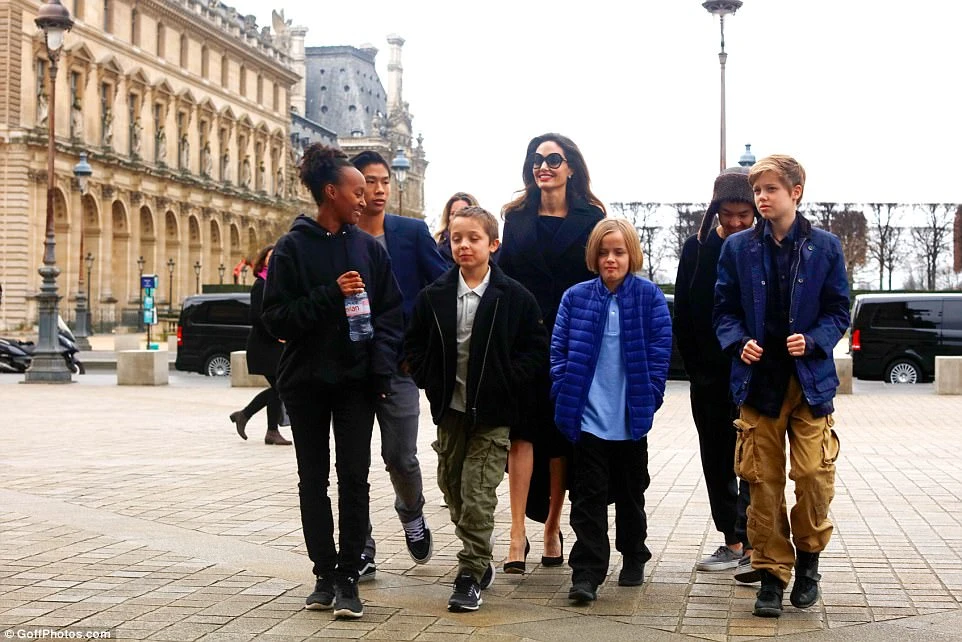 i gia đình Angelina đi thăm bảo tàng Lourve. Ảnh: Goff photo