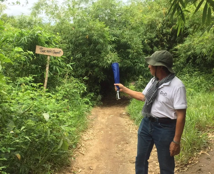 Du khách đang trên đường vào rừng Tà Đùng khám phá thác trượt.