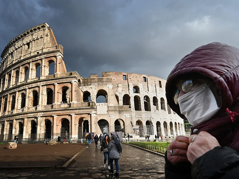 Một người đàn ông ở thủ đô Rome đeo khẩu trang phòng COVID-19 khi dịch này bùng phát tại Ý. Ảnh: AFP