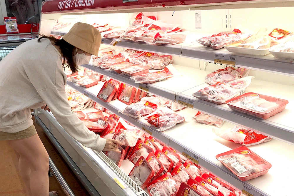 Gà nuôi cũng chung cảnh ngộ khi giá thịt gà công nghiệp bán lẻ tại các siêu thị, chợ truyền thống TP.HCM vẫn cao. Giá đùi tỏi gà hiện lên tới 90.000-100.000 đồng/kg, cánh gà 85.000-100.000 đồng/kg, ức gà 90.000 đồng/kg… Trong khi đó, giá gà công nghiệp tại các trang trại lại ở mức rất thấp.